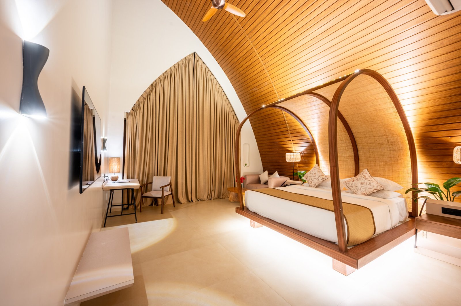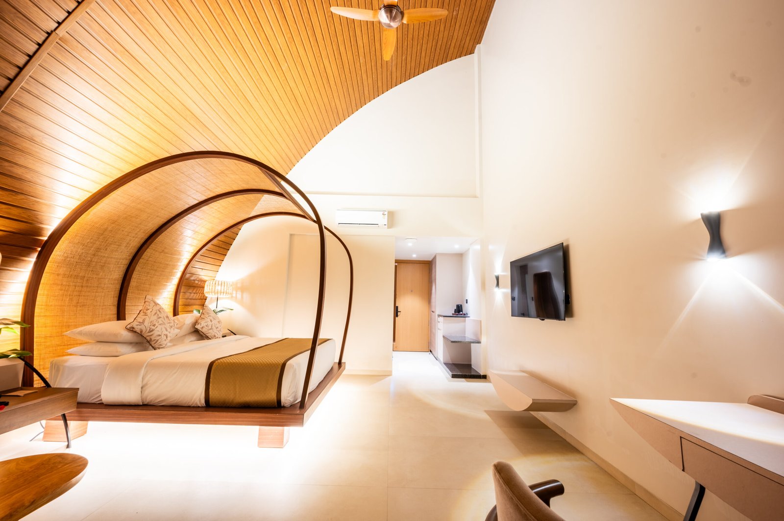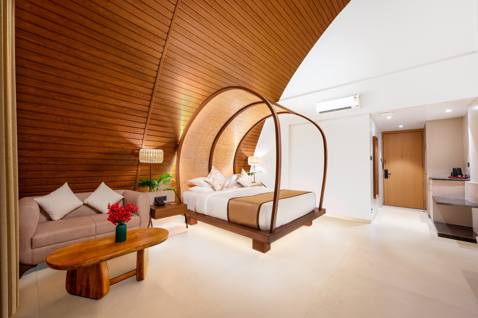 Spanning 350 sq. ft, the Nest Lake View room offers an expansive and refined setting overlooking tranquil lake waters. The room features a king-sized bed and comfortably accommodates up to three adults, allowing for relaxed living without compromise. Elegant interiors, soothing tones, and uninterrupted views create a stay experience that feels open, indulgent, and effortlessly calm.